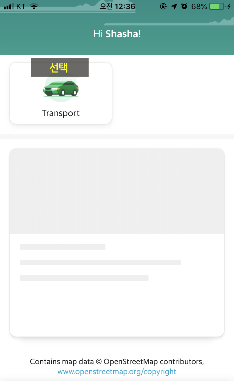 어플을 켜서 Transport를 선택합니다. 선택을 하면 GPS가 파란 위치가 자동으로 잡히는데 나의 현재 위치가 올바른지 확인합니다. 택시가 그 위치로 오기 때문에 만약 위치가 잘못되면 그 위치로 찾아가야 하며 만약 택시가 5분 이상 기다리게 되면 취소됩니다. 특히 방콕처럼 차가 많이 막히는 곳에서는 길에서 바로 태우지 못할 경우 택시가 그 자리에 정차하지 못하고 지나가게 되는 경우가 많은데 그러면 다시 그 자리로 돌아오는데 많은 시간이 걸리니 이를 주의해야 합니다.