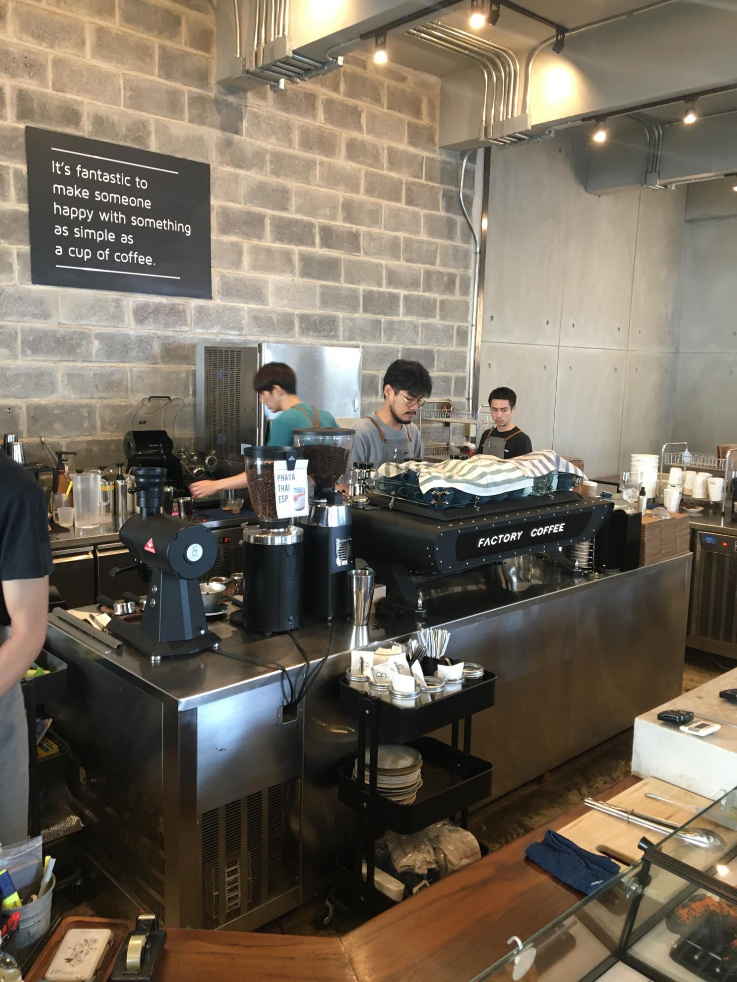 팩토리 커피는 이른 아침부터 오로지 커피를 마시기 위해 많은 로컬분들이 찾는 핫플레이스입니다. 태국의 커피 문화를 이끄는 곳 중 하나이며 태국 현지와 전 세계에서 공수한 원두를 직접 매장에서 로스팅하여 내려 신선한 커피를 자랑합니다.