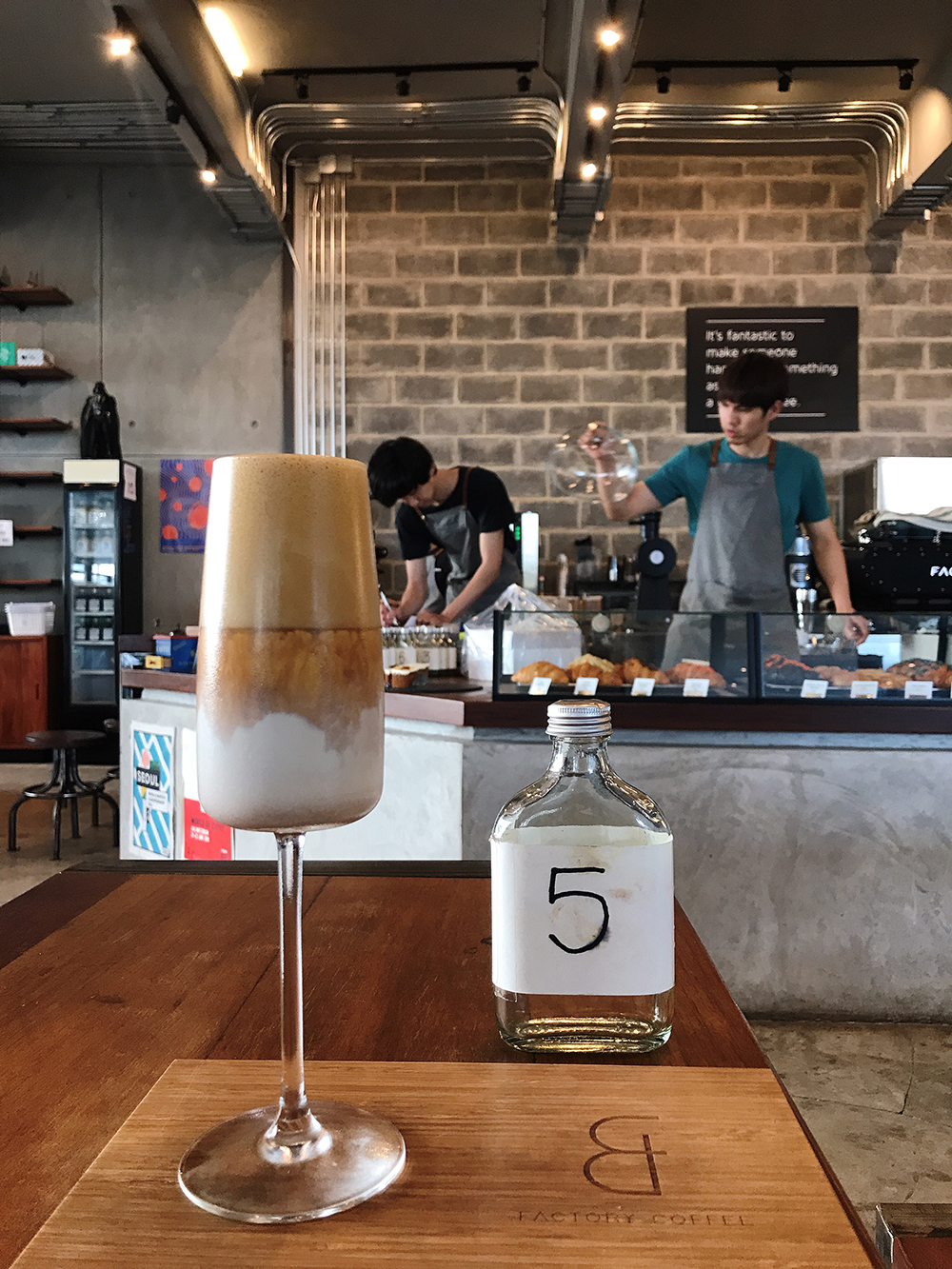 카페는 요즘 인테리어 트렌드와 팩토리라는 이름을 살려 거친듯한 공장의 느낌을 주면서도 깔끔한 인상을 주고 있습니다. 늦은 아침을 먹고 11시쯤 갔을 때는 관광객보단 로컬 분들이 대부분이었고 혼자 와서 커피를 마시며 노트북, 아이패드로 바삐 무언가 하고 있는 모습들이 인상적이었습니다. 팩토리 커피는 한국 승무원들 사이에서 유명해지면서 입소문을 타 최근에는 커피를 좋아하는 한국분들이 찾고 있는 유명해지고 있는? 카페입니다.