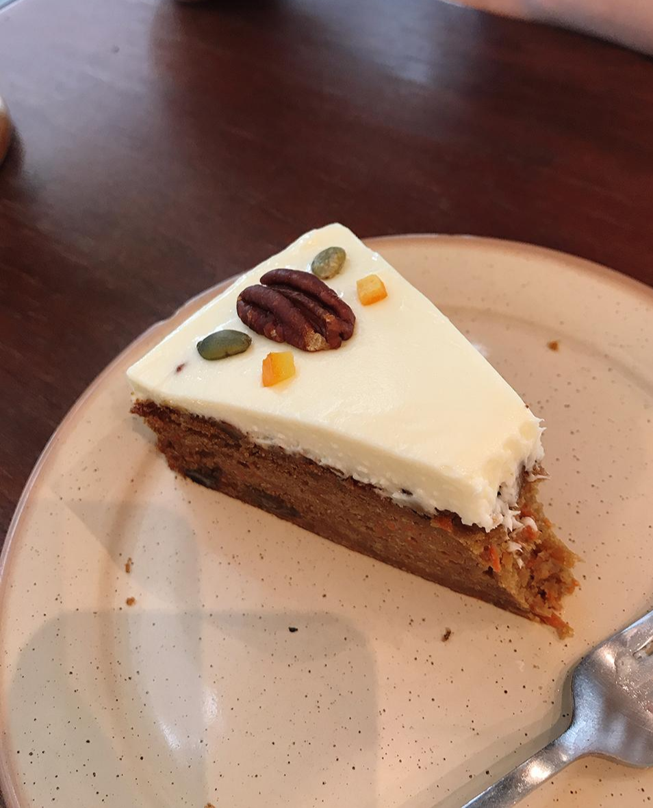 팩토리 커피는 빵이나 케이크도 유명한데 우연히 주문해본 당근 케이크가 생각보다 참 맛있었어요. 당근을 별로 안 좋아하지만케이크 앞에서는 너그러워져 잘 먹는데, 당근 특유의 향이 안 나고 당근이 보이지만? 참 강하지 않고 맛있어요.