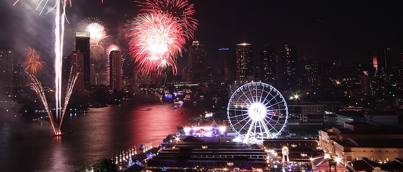 아시아티크는 방콕에서 센트럴 월드 스트리트만큼 새해를 맞이하고자 하는 인파들로 붐비는 가장 인기 있는 장소 중 하나입니다. 12월 31일 오후 5시부터 아시아티크에서의 카운트다운은 텔레비전으로 방송될 예정되어있을 정도로 방콕의 카운트 다운 장소로 상징적으로 유명합니다. 아시아티크를 가는 가장 좋은 방법은 사판탁신 역에서 셔틀 배를 타고 갈 수 있습니다. 많은 인파가 모일 거라 줄이 길 테니 일찍 출발하시길 바랍니다.ㅜ