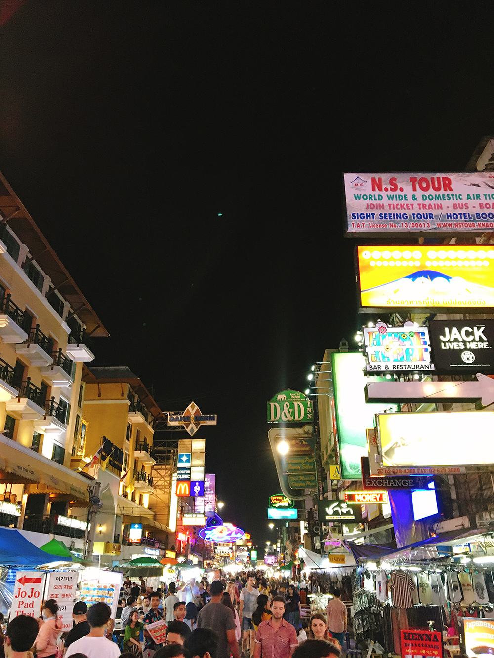 카오산로드의 사진은 뭔가 동남아스러우면서 외국인들이 많고 특이한 음식들도 팔아 이국적인 느낌이 많이 들 줄 알았는데 웬걸.. 호객행위의 길이고 펍이나 클럽에 안에 들어가지 않아도 길이 일단 클럽처럼 정말 시끄러웠습니다. 피곤함도 많았고 적당히 시끄럽길 바랬는데 너무 소음처럼 느껴졌고 자꾸 메뉴판을 들이미는 호객행위에 지치더라고요. 체력이라도 있었으면...