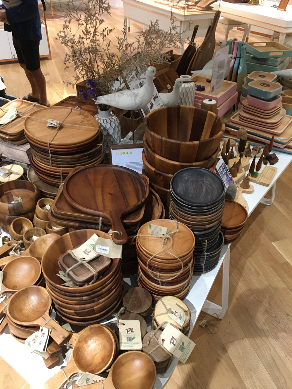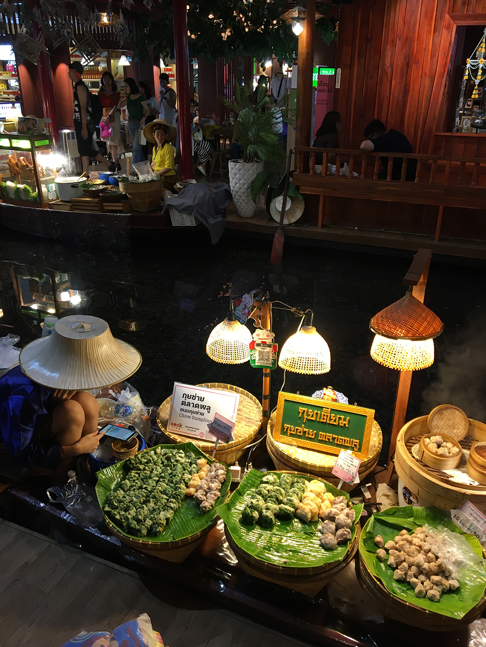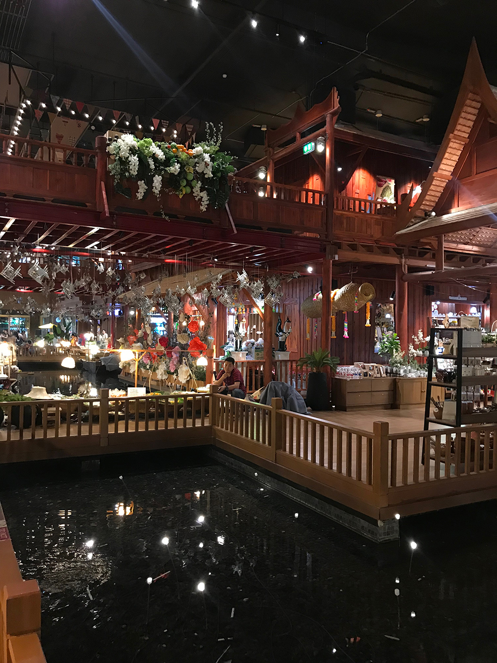 보트에 내려 아이콘 시암 안으로 들어가면 명품들 매장이 쭉 나옵니다. 더 걷다 보니 제가 가장 기대했던 시암 쑥(Siam Sook)이 나타났습니다. 백화점 안에 수산시장처럼 꾸며진 심암 쑥은 200여 명의 아티스트가 전통 거리처럼 꾸며놓은 곳으로 아이콘 시암의 놓치지 말아야 할 장소입니다. 이곳에서 음식도 사 먹을 수 있고 예쁜 기념품도 구매할 수 있어요. 아기자기 정말 재밌답니다.
