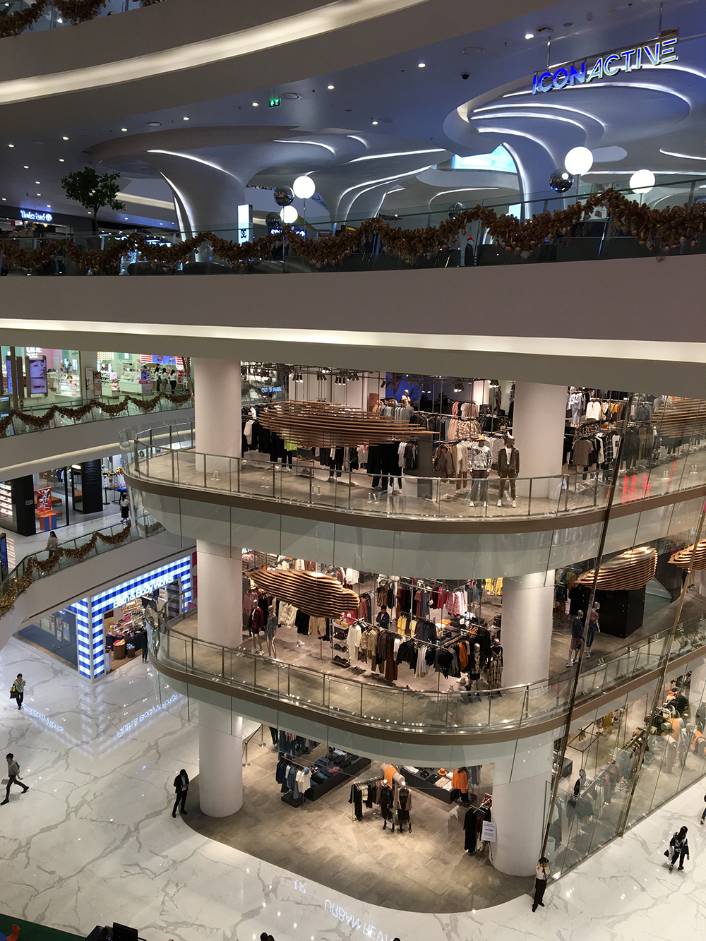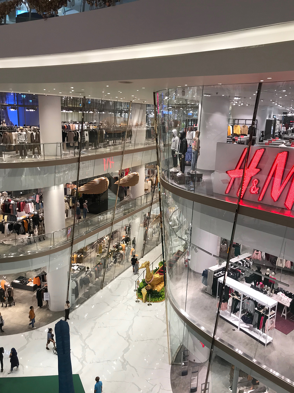 위로 올라오면 거대한 쇼핑몰의 크기를 느낄 수 있습니다. 6층으로 이루어진 아이콘 시암은 각 매장에 들어 서면 그 규모를 더욱 느낄 수 있는데 매장마다 천장이 다 높고 한 매장 당 규모가 매우 컸습니다. 그래서 쇼핑하기에도 쾌적했을 뿐 아니라 고급스러운 느낌을 많이 줍니다. 각각 브랜드마다 독특한 디스플레이로 신경 쓴 모습이 SPA 브랜드마저 고급스러워 보이는 효과를 줍니다.