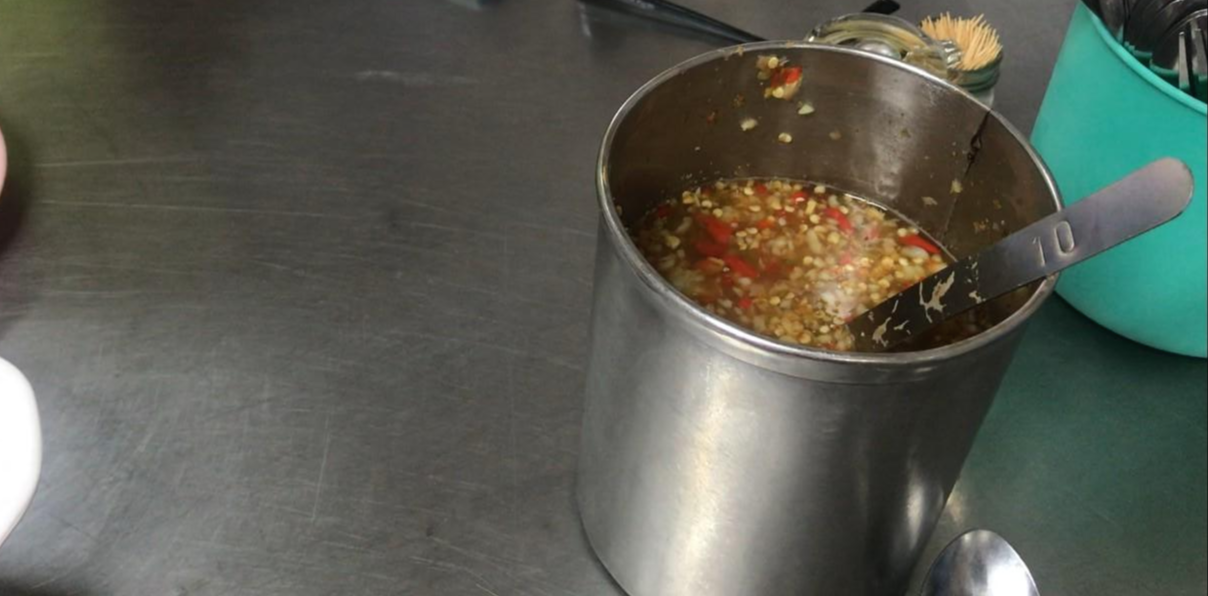 족발 껍질도 매우 연해 부담 없이 스르륵 녹는데 저는 약간 느끼해서 먹다 보면 살코기만 먹게 됐습니다. 그러다 곁들인 옆에 있는 소스!! 이 소스가 정말 맛있습니다. 소스는 남찜카무라는 소스로 매운 고추에 피시소스, 마늘, 레몬즙 등이 섞인 맛 같은데 새콤하면서도 매콤해서 카오 카무에 살짝 찍어먹으면 먹다가 느끼해질 수 있는 족발을 꽉 잡아줍니다. 꼭 소스를 찍어 드세요.
