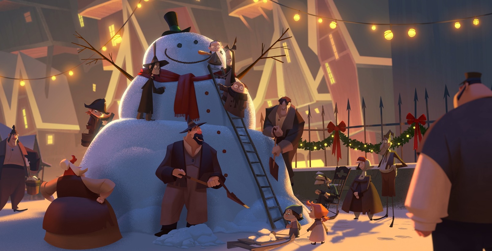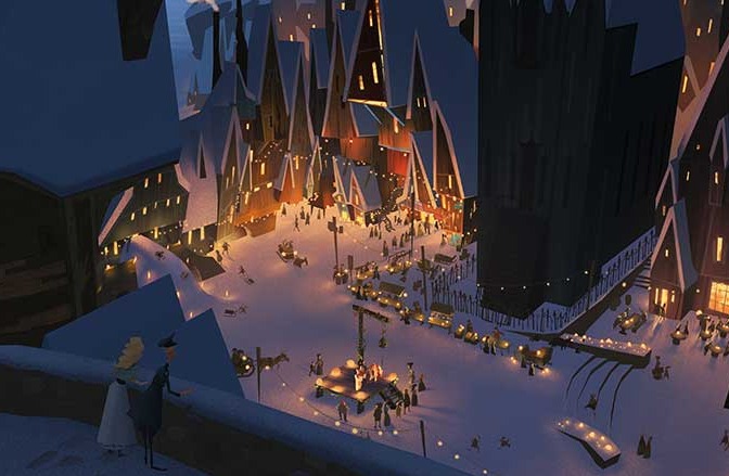 재스퍼가 마을에 처음 도착했을 때의 모습을 회색의 어두운 톤으로 가득차게 만들어서 자칫 무섭거나 공포스러웠습니다. 크리스마스 영화라고 봤는데 어두워서 당황; ㅎㅎ 이는 스토리의 메시지와 함께 크리스마스 느낌의 밝고 희망찬 모습으로 변화합니다.