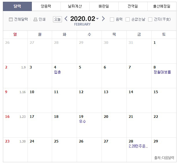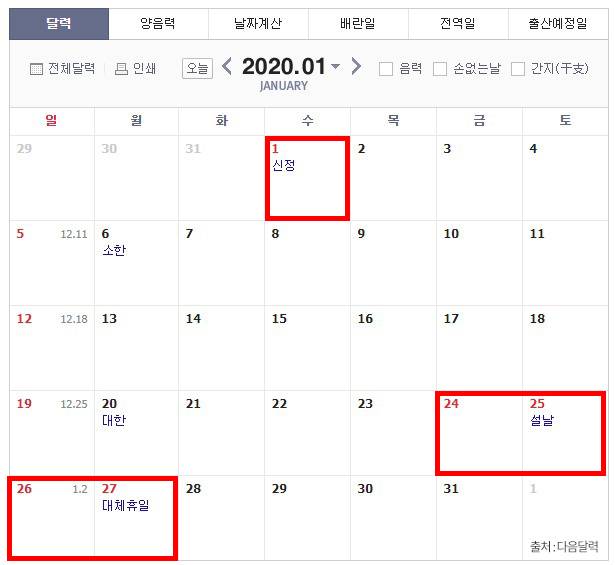 2020년 휴일 정리해드리겠습니다. 열심히 휴가 날짜를 계획해보자고요 ㅎㅎ