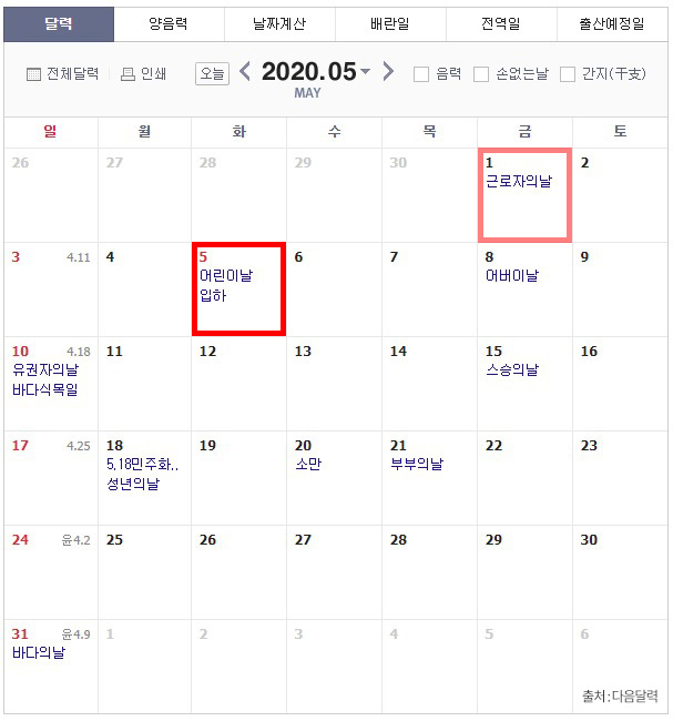 4일에 휴가를 쓰면 근로자의 날부터 5일 쉴 수 있겠네요.