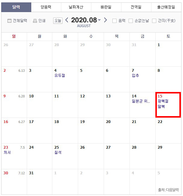 ... 광복절 토요일 네? 6, 7, 8 쉬는 날 없음 실화?