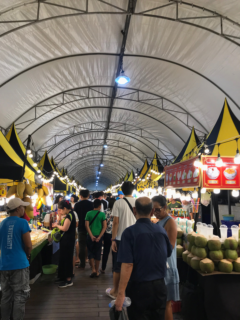 아시아티크 안쪽에는 딸랏롯파이처럼 푸드 마켓이 길게 있습니다. 크기는 크지 않지만 웬만한 건 다 있는 스위트 푸드 코너입니다. 천막으로 되어 있는 이곳은 앞에는 쭈욱 먹을 것을 파고 안쪽에 가수가 노래를 하고 있어 공연을 보면서 먹을 수 있는 자리들이 마련되어 있습니다.