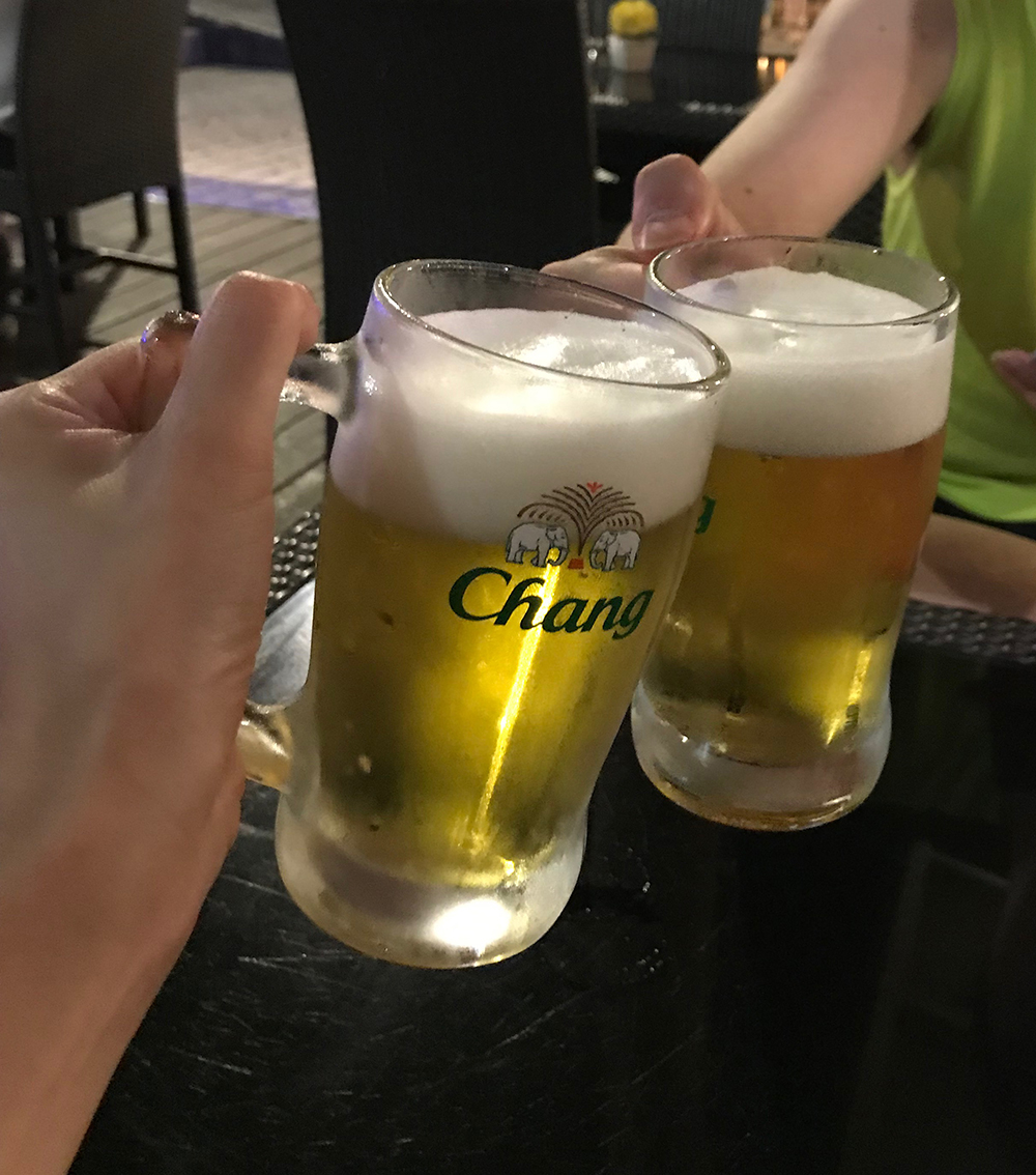 도저히 안주는 먹을 배가 아니라서 맥주를 마시면서 마무리 했습니다. 사실 안주가 필요 없었어요. 풍경과 노래가 안주였습니다. 방콕은 이런 라이브 바라던지 술집이 많아 참 좋은 것 같아요. 노래를 켜놓는 곳보다 좀 더 생동감 있고 현장감 있는 느낌이예요.