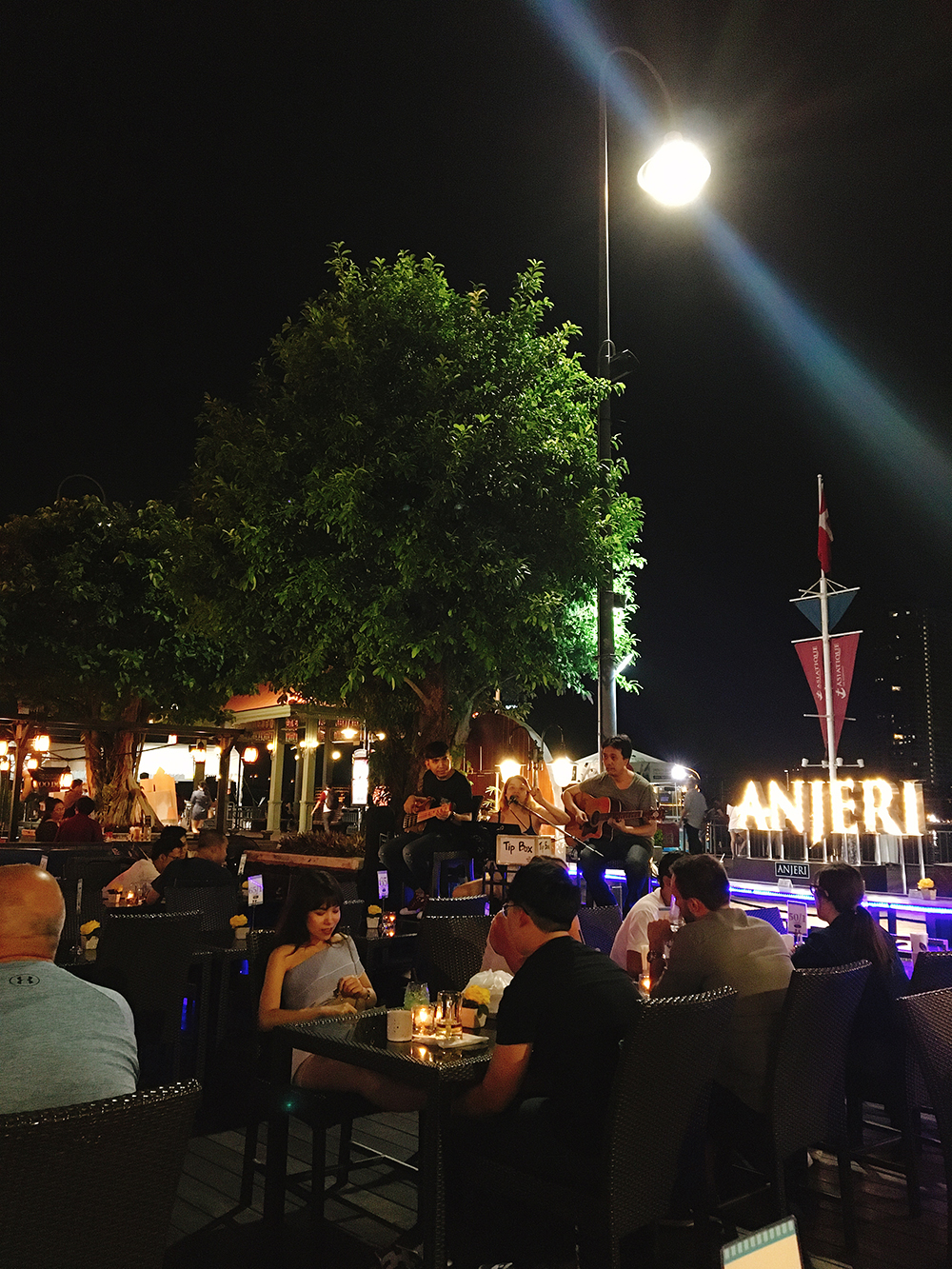 망고 탕고를 먹고 다시 강가 근처를 돌아다니면서 분위기를 즐겼습니다. 아직 호텔로 돌아가기 아쉬워 서성이다가 너무 좋은 노래가 흘러나오는 라이브 공연중인 Capri 술집을 들어가게 됐어요. 바로 앞이 강가라 강가를 바라보면서 허스키했던 가수분의 목소리를 들으며 여행의 마지막 날 밤을 즐겼습니다.