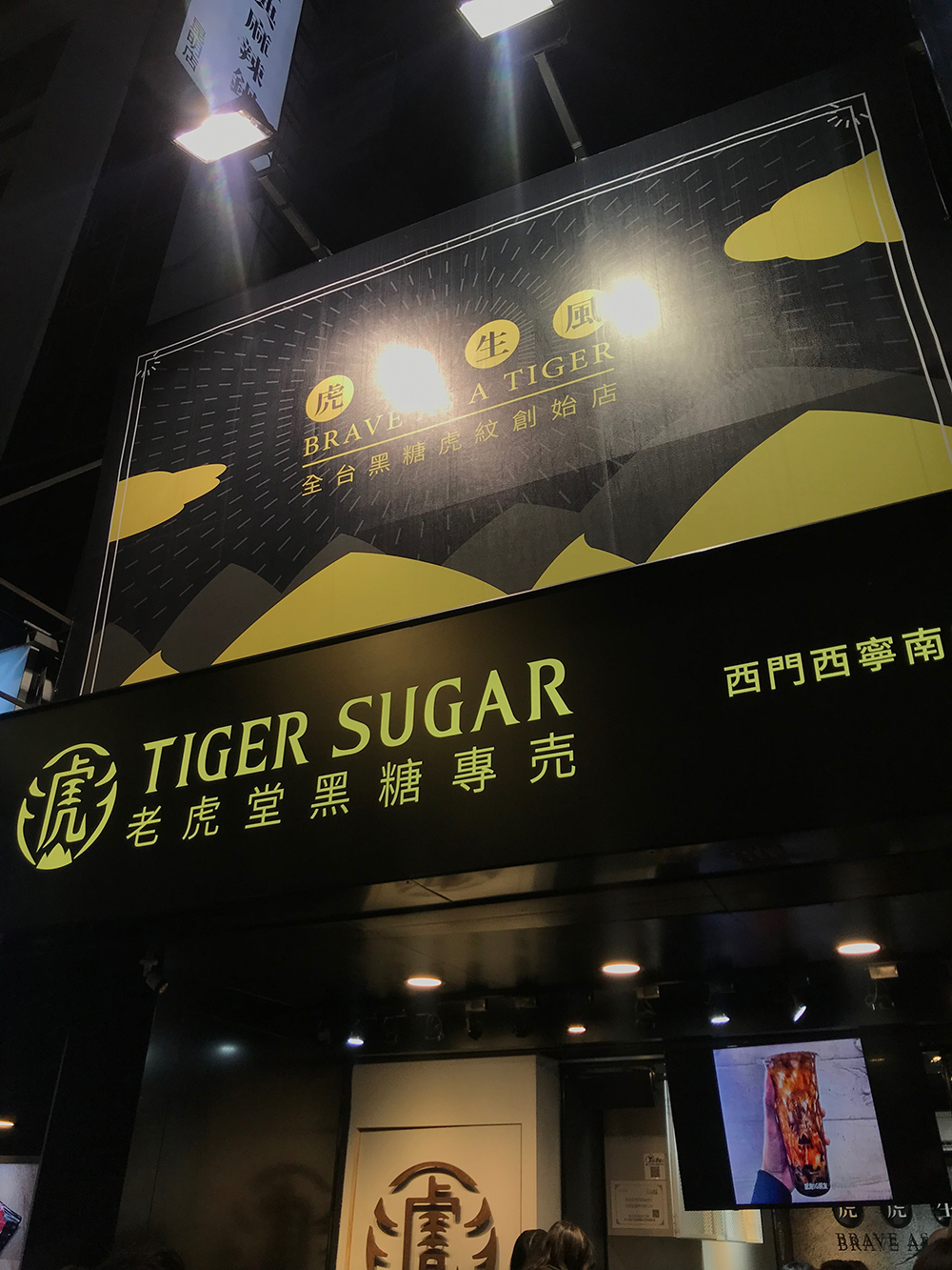 그 어느 지점보다 항상 사람이 많은 타이거 슈가 시먼점입니다. 다른 지점도 방문했어서 함께 쓰려 했는데 구글 지도에는 등록을 안했는지 좌표가 뜨지 않네요. 공홈에 보니 생각보다 많은 지점이 타이페이에 있는 듯 했습니다. 지나가시다 다른 지점을 보신다면 운이 좋으신 거예요 ㅎ