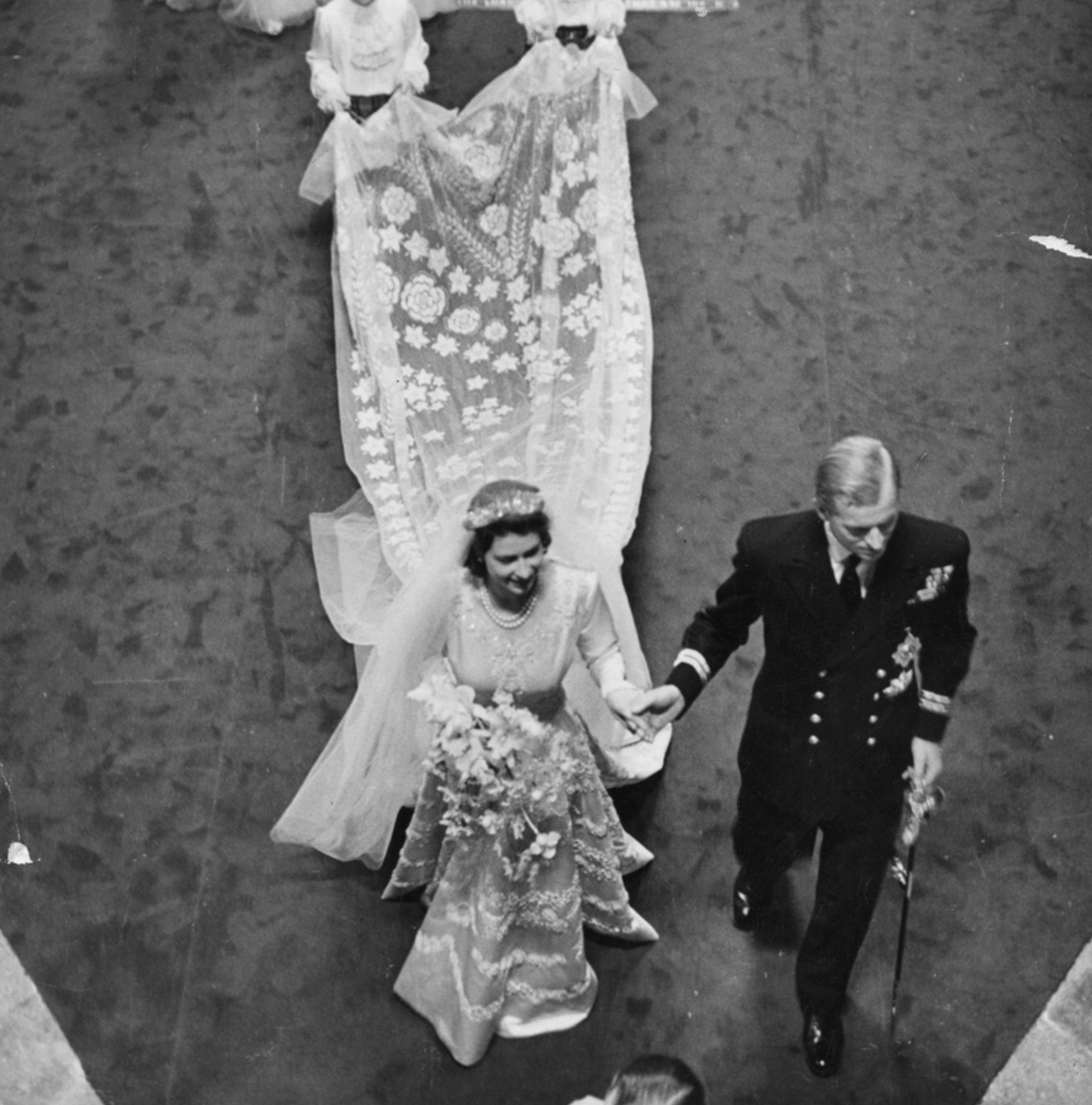 그리고 같은 해 11월 20일 웨스트민스터 대성당에서 2000여 명의 하객들 앞에서 엘리자베스 공주는 필립과 결혼식을 올립니다. 보티첼리의 프리마베라 봄에서 영감을 받은 드레스를 입은 앨리자베스는 할머니인 메리 왕비의 티아라를 빌려서 썼습니다.