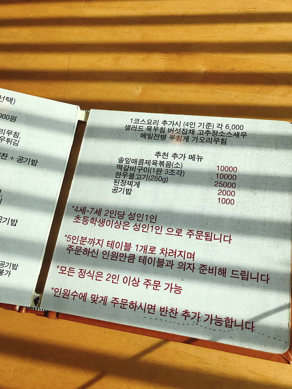메뉴판은 책처럼 되어있는데.. 돈 많이 버셔서 나중에 디자인 리뉴얼해주세요. 디자이너로써 안타깝..메뉴가 잘 안 읽혀요ㅠ