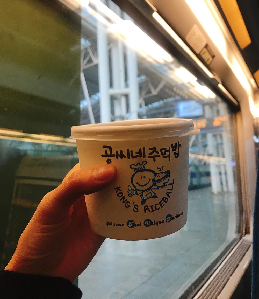 아침 8시 25분에 서울역에서 KTX를 올라탔습니다. 서울역에서 먹을 게 없을지 고민하던 중 다른 건 안땡기고 밥과 커피가 먹고 싶어서 역 안에 있는 공씨네 주먹밥과 아메리카노를 사들고 올라탔습니다. (나는 아~아~ 한국인) 이날 서울은 황사가 매우 심할 때라 사실 여행을 좀 걱정했어요.