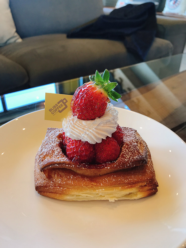 딸기 페스츄리는 저엉말 맛있었습니다. 위에 약간의 시럽이 뿌려져 있는데 크림과 함께 달달해서 정말 좋았어요. 딸기는 무르지 않고 싱싱했고 페스츄리도 바삭바삭하니 훌륭했습니다. 이 카페가 우리 동네에 있다면 맨날 올 텐데 아쉽더라고요ㅠ