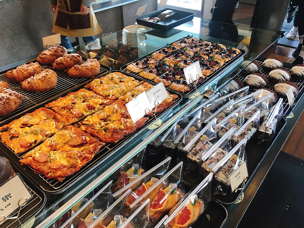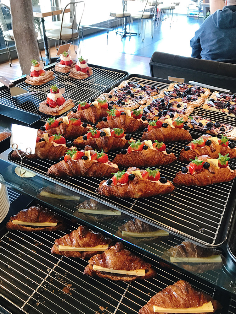 주문은 1층에서 가능합니다. 들어올 때부터 화려하고 맛있어 보이는 빵들에 눈길이 가더라고요. 밥을 먹지 않았다면 다 먹어보았으면 좋았겠거늘 ㅠㅠ 커피와 함께 상큼한 게 땡겨 딸기로 된 페스츄리와 커피를 주문하기로 했습니다.