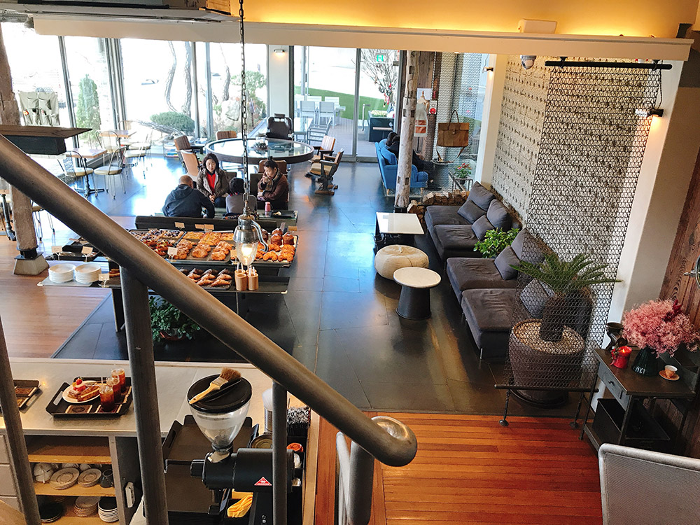이곳의 장점 중에 하나는 1층에 애견 동반 존이 있다는 거였어요. 여행 가실 때 강아지를 데리고 가는 분들이 많은데 음식점이나 카페에서 데리고 들어가도록 허용 안 하는 곳이 많잖아요? 고객들이 컴플레인할 수 도 있으니까요. 그런데 여기는 1층에 애완견을 데리고 올 수 있도록 아예 존을 만들었습니다. 그렇다고 인테리어가 안 이쁜 게 아니고 신경을 많이 썼다는 느낌이 들어 참 좋았습니다. 인상적이라서 사진을 찍어왔어요.