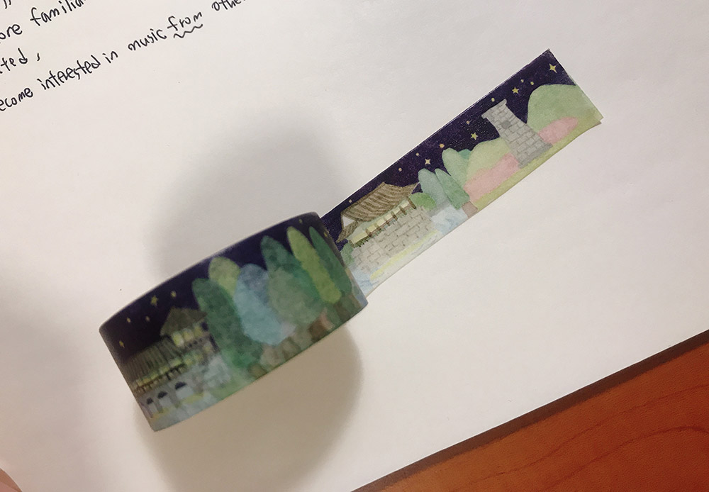 마스킹 테이프가 약간 도톰해서 정말 좋아요. 얇은 건 잘 찢어지고 붙어서 뜯어 쓰기도 힘들 때 있잖아요. 이건 도톰하고 이렇게 경주의 밤 풍경이 예쁘게 되어 있어 참 좋네요!
