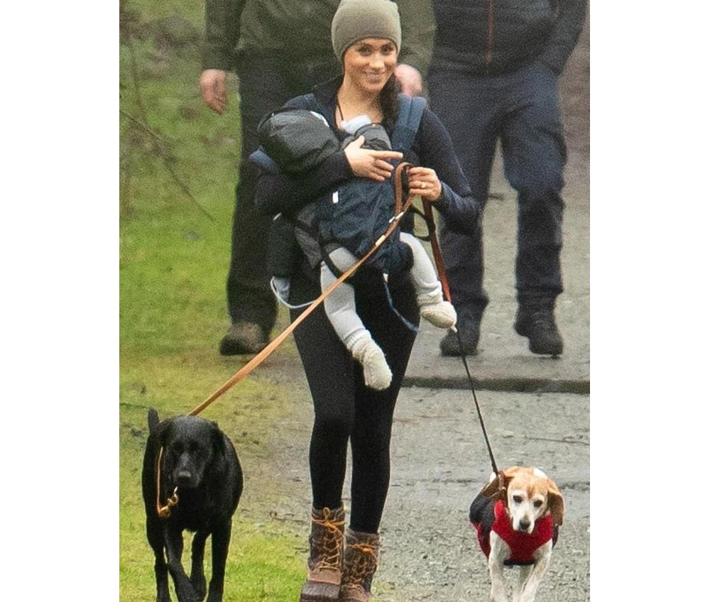 요즘 해리 왕자 부부의 행보로 떠들썩하죠. 파파라치에 눈이 마주쳐 웃는 그녀는 어설프게 아기띠를 둘렀는데 이건 또 흘러내려가고 거기에 두 강아지까지 함께 산책하는 것이 찍혔는데 보는 이로 하여금 연출된 모습 같다는 평이 많습니다. 더군다나 뒤에 경호원까지 둘 함께 있는데 이 경호원은 캐나다 정부에서 붙여줬다고 하죠. 산책 패션은 캐나다 브랜드 룰루 레몬 레깅스와 부츠를 신었다고 합니다.