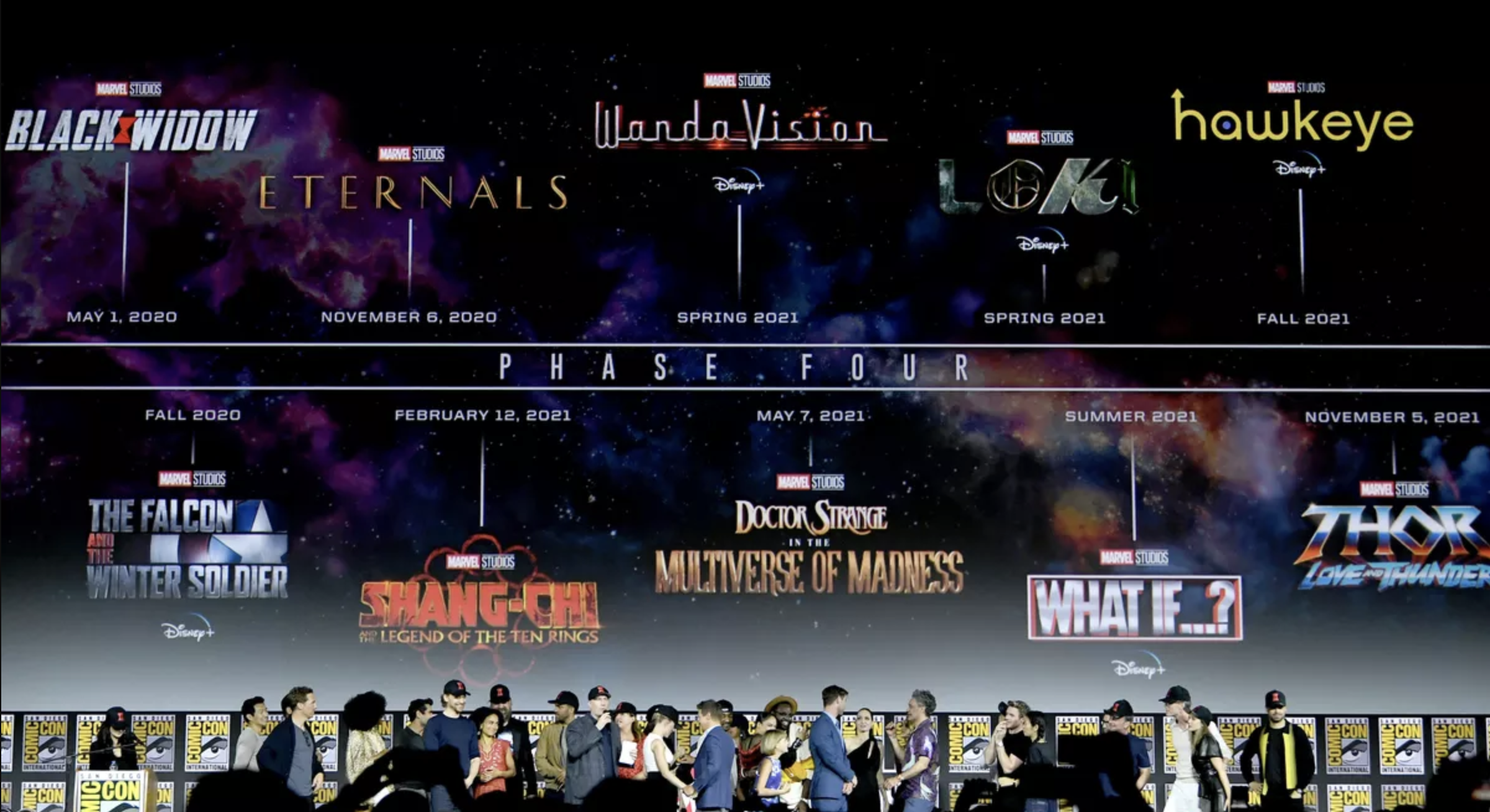 디즈니는 영화 외에 디즈니 플러스에서 마블의 세계관 확장에 힘쓸 것을 예고했습니다. 블랙 위도우(5월)와 이터널스(11월)가 영화로 개봉되는 것 외에 디즈니 플러스 스트리밍 서비스에서 팔콘&윈트 솔져가 촬영 중에 있으며 올해 가을 오픈 예정이며 완다 비전도 촬영 중에 있고 내년 봄 오픈 예정을 앞당겨 올해 말에 나온다는 얘기도 나오고 있습니다. 로키도 촬영에 들어가 내년 초 오픈 예정이라고 합니다.