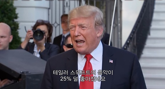 테일러 스위프트 팬이였던 도널드 트럼프는 테일러 음악을 예전보다 25% 덜 좋아하게 됐다며 실망감을 표현했습니다.