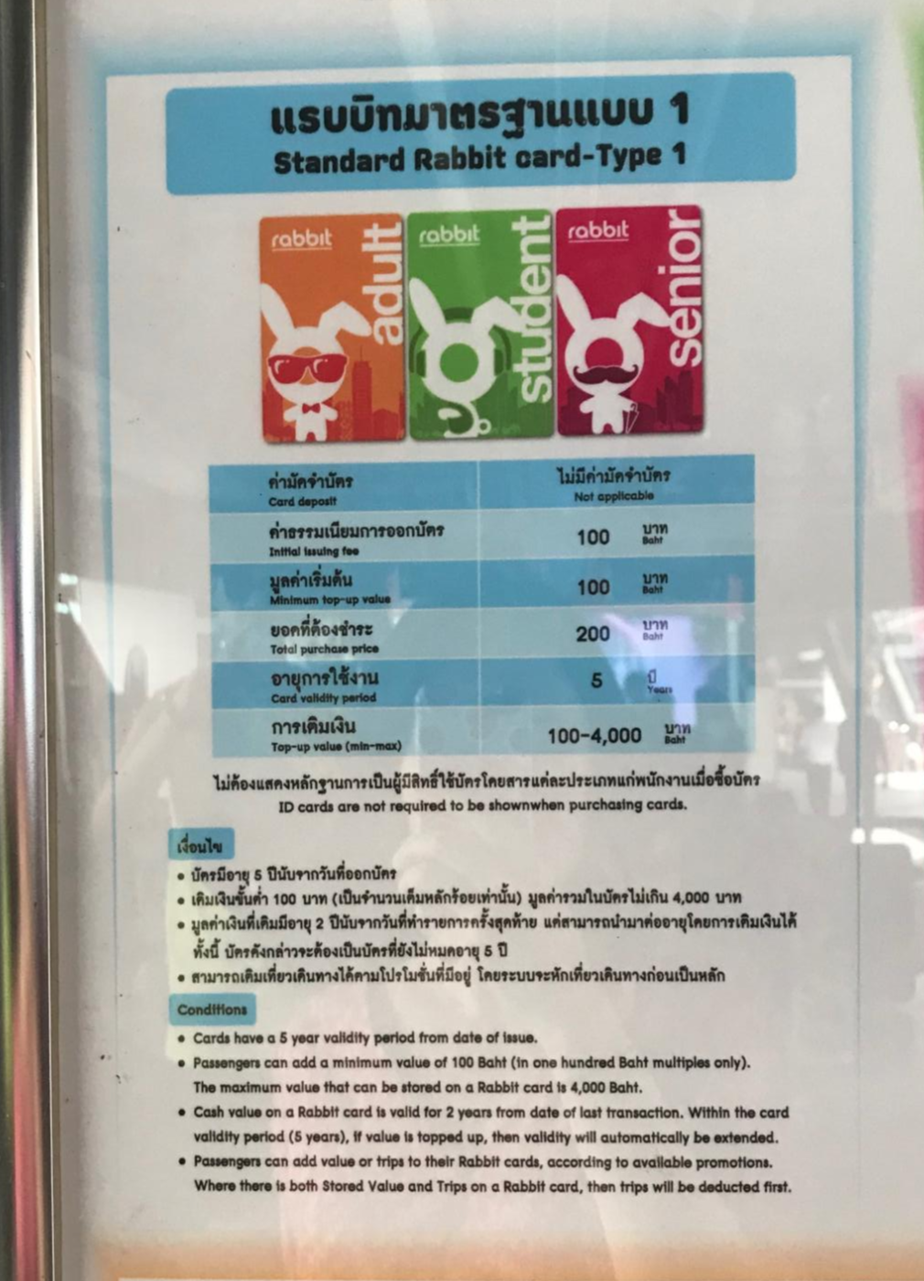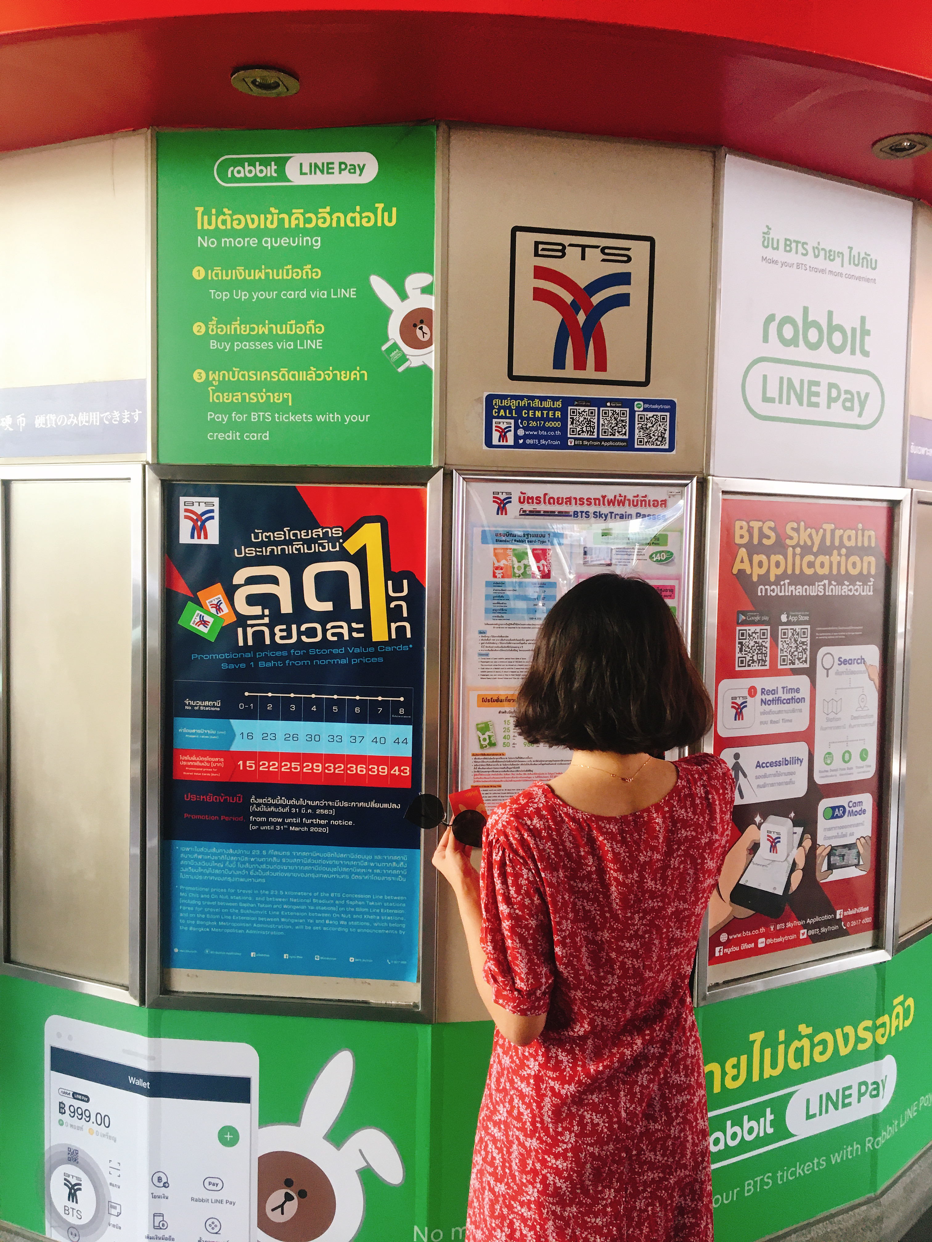 방콕에서 BTS는 방탄소년단이 아니라 스카이 트레인이라고 해서 땅 아래가 아닌 위를 지나가는 고가 형태의 지상철이에요. 현지에서는 롯파이파라고 불린다고 합니다. 먼저 BTS를 타기 위해서는 Rabbit 레빗 카드가 필요합니다. 한국에서 구매해서 방콕 공항에서 수령이 가능하지만 저는 첫 번째 숙소인 파야타이 역은 별로 붐비지 않을 것을 예상하고 BTS역 창구에서 구매했습니다. 레빗 카드를 사고 충전하는 데는 전혀 어렵지 않으나 여권을 보여달라고 하니 꼭 지참하세요.(카드 당 여권 개별 필요)