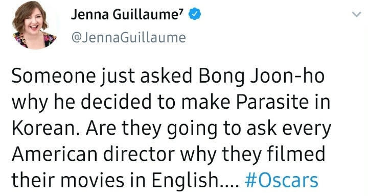 봉준호 감독에게 어떤 인터뷰어가 왜 기생충을 영어가 아닌 한국어로 제작했는지 물어봤다고 합니다. 그 인터뷰에 사람들은 왜 저런 말도 안 되는 질문을 하냐는 반응인데요.