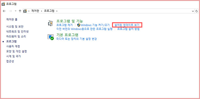 제어판에 프로그램에 들어가면 프로그램 및 기능에 설치된 업데이트 보기가 있어요. 그걸 누르고 들어가세요.